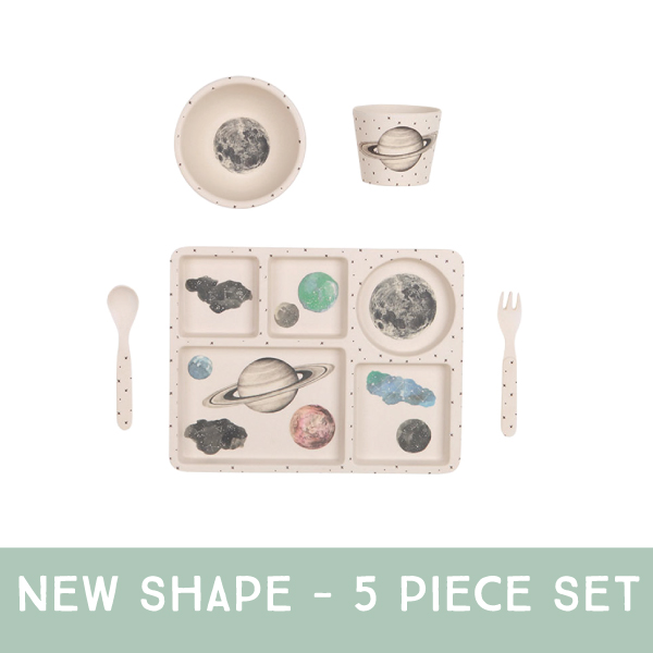 Our bamboo dinner sets are made from the bi-product of the bamboo industry, the left overs that no-one uses. These are then ground into a powder, mixed with a food-grade binding resin and then poured into a mould to set. Each of the bamboo pieces are then then treated similarly to porcelain where they is baked twice - first time to shape the product, then again a second time when the decal is applied, the product is then sealed and finished.