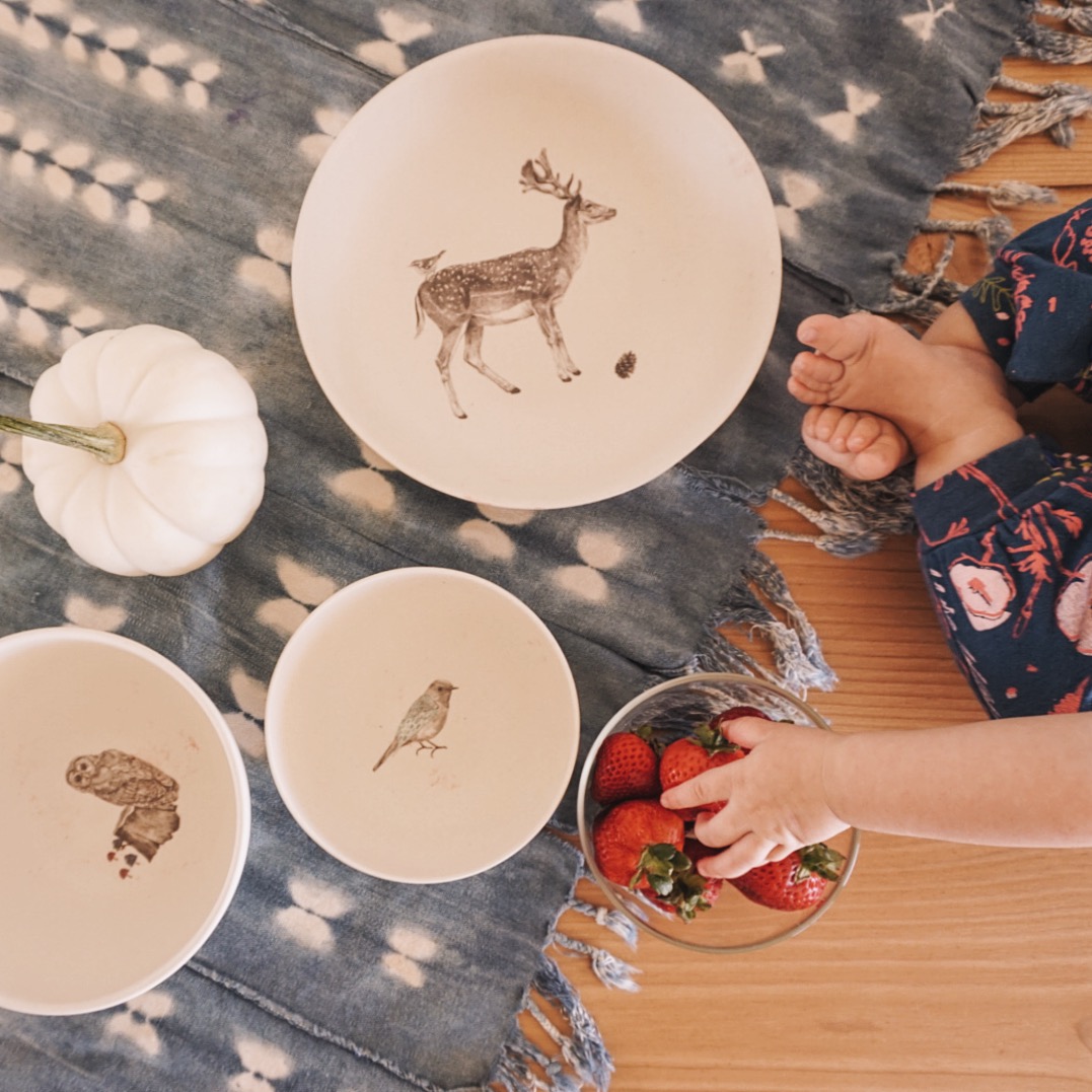 The Bear and Deer 4 pack of plates, Raindrops & Rainbow wall decal, and everything with the new Moon and Stars print!