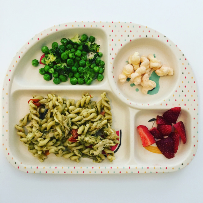 "Segmented plates are the best. I don’t know why but having the foods in there own little part is really appealing to Miss P. I think it makes the food more attractive and she enjoys looking at each little part. I always start with a “main part” of the lunch and then add some bits and pieces she can pick at. Finger food seems to work really well for lunch time. All of the things I serve at lunch she eats with her hands."